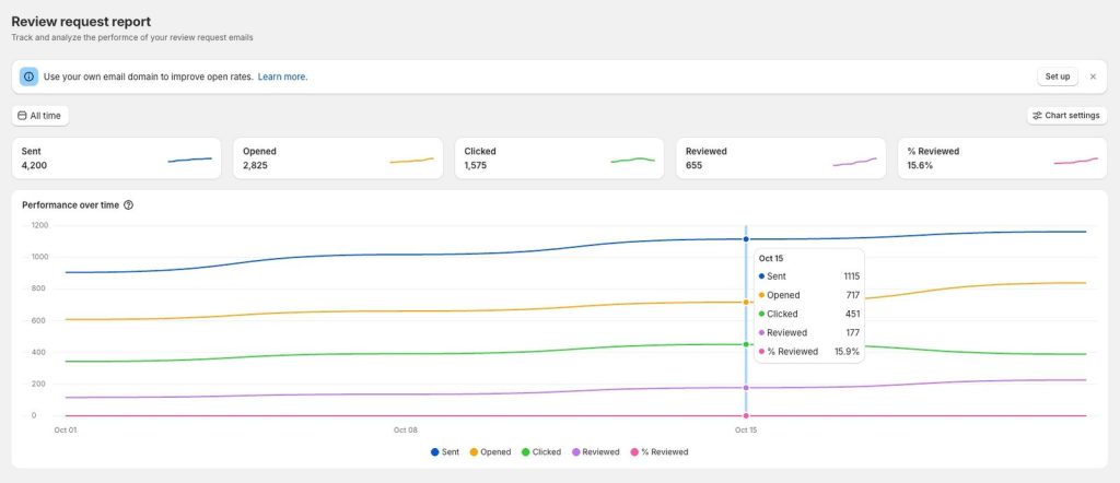 With this data, you can make smarter, data-backed decisions to improve your email performance — such as refining your message content, adjusting send schedules, or optimizing reminder timing to increase review rates.