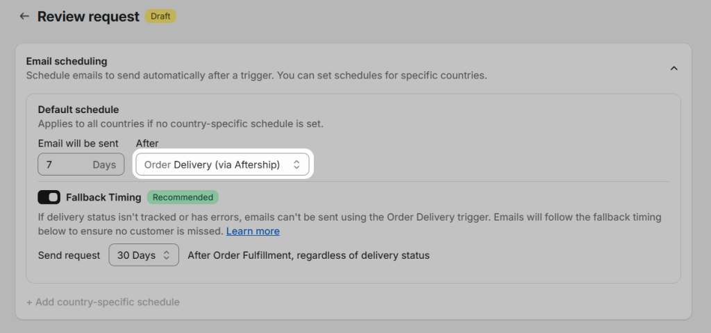 To solve this, TrustShop now supports Order Delivery as a trigger for review request emails. Through the integration with AfterShip, a leading order tracking platform, TrustShop can detect when an order has been delivered and automatically send review requests at the most relevant time.